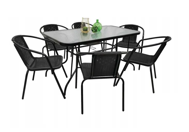 Zestaw ogrodowy jadalniany na taras Stół 140x80 na parasol dla 6 osób czarny