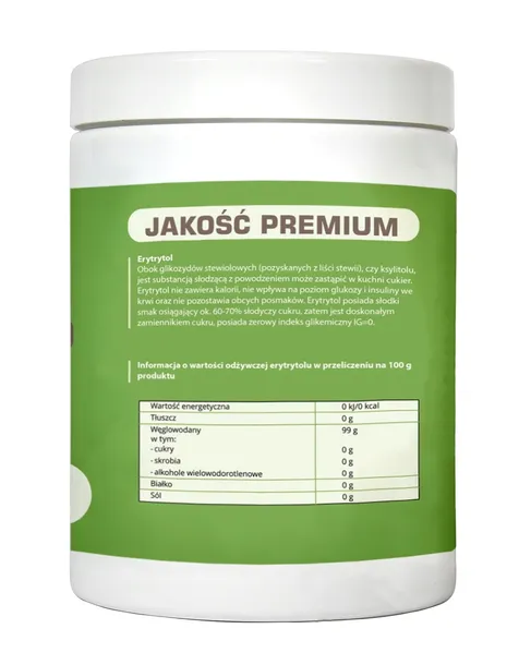 - description_extra1: |100% erytrytol|Sposób użycia Produkt gotowy do spożycia. Przeciwwskazania Produkt nie może być stosowany jako substytut zróżnicowanej diety. Zrównoważony sposób żywienia oraz zdrowy tryb życia są podstawą prawidłowego funkcjonowania organizmu. Nie należy przekraczać zalecanej porcji do spożycia w ciągu dnia. W przypadku stosowania leków lub innych suplementów diety należy skonsultować z lekarzem. Przechowywanie Przechowywać w suchym i chłodnym miejscu. |Podmiot-odpowiedzialny: MedFuture Sp. z o.o. pl. Powstańców Śląskich 16-18 53-314 Wrocław NIP: 8992741518; REGON: 022063555