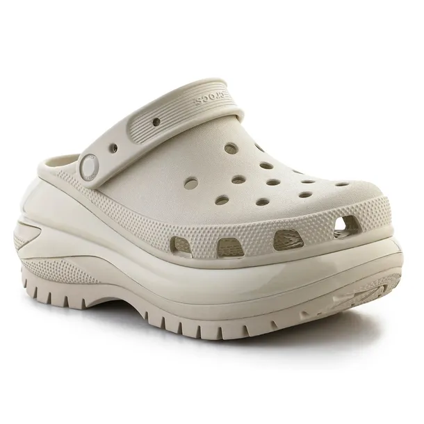 Crocs MEGA CRUSH CLOG 207988-2Y2 to unisex chodaki w kolorze beżowym, które łączą nowoczesny design z wyjątkowym komfortem. Dzięki podwyższonej platformie i solidnej konstrukcji, te chodaki oferują stylowy wygląd oraz wygodę na co dzień. Wykonane z trwałych materiałów, są odporne na zniszczenia i łatwe w utrzymaniu czystości. Klasyczny design został wzbogacony o nowoczesne akcenty, co sprawia, że świetnie pasują zarówno do codziennych, jak i bardziej wyrazistych stylizacji. Dzięki piance Croslite™, chodaki te zapewniają doskonałą amortyzację i wsparcie, a otwory wentylacyjne dbają o odpowiednią cyrkulację powietrza. Crocs MEGA CRUSH CLOG w kolorze beżowym to doskonały wybór dla każdego, kto ceni połączenie stylu i funkcjonalności.