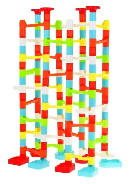 Mega kolorowy, wytrzymały, znakomicie wykonany tor z kuleczkami to propozycja dla dzieci już od 3 - go roku życia, ale z pewnością wzbudzi zainteresowanie również starszych dzieci. Gra polega na samodzielnym zbudowaniu konstrukcji toru a potem puszczaniu piłeczek tunelami. Można wzorować się na instrukcji obrazkowej, znajdującej się w zestawie lub stworzyć swoją własną wieżę. Puszczanie w ruch kuleczek i obserwowania jak pokonuje kręte tunele, daje mnóstwo radości, uspokaja i wycisza. Zabawka pozytywnie wpływa na rozwój kreatywności, wyobraźni i zdolności manualnych. Przeznaczona jest dla 2-4 graczy.