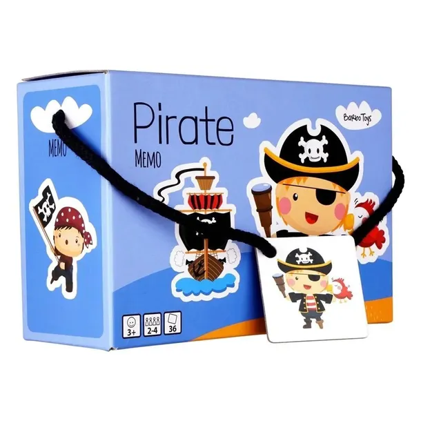 Memory dla dzieci, Gra Pamięciowa, 36 el., Piraci Jak dziecko może ćwiczyć swoją pamięć? Najlepiej w formie zabawy. Oto klasyczna gra pamięciowa, ze świata Piratów, która wzbudzi entuzjazm u najmłodszych. Gra polega na odkrywaniu dwóch obrazków i znajdowaniu par. Jeśli są takie same, gracz zabiera je z pola gry. Ma również dodatkowy ruch. Jeśli nie uda się odnaleźć pary, to obrazki się zakrywa i próbuje kolejna osoba. Gra toczy się do zebrania wszystkich elementów. Wygrywa osoba z największą liczbą odnalezionych par. Memory to doskonała zabawa logiczna dla najmłodszych jak i starszych dzieci. Pozwala nie tylko wzmocnić umiejętności motoryczne, trenować pamięć, ćwiczyć koncentrację i spostrzegawczość, ale również uczy uważności i cierpliwości. Zarówno pudełko jak i elementy gry wykonane są starannie i z ogromną dbałością z grubego lakierowanego kartonu. A niezwykłe i pełne kolorów obrazki, pobudzają wyobraźnię, zachęcają do kreatywnej zabawy i miłego spędzenia czasu. Szczegółowe informacje o produkcie: Gra zawiera 36 elementów. Przeznaczona dla 2 do 4 graczy. Ozdobne zamykane pudełko z grubego kartonu z uchwytem, idealne na prezent lub jako dekoracja dziecięcego pokoju. Gra przyciąga uwagę dzieci, ćwiczy pamięć i koncentrację, stymuluje rozwój. Wymiary opakowania: 12 cm x 18 cm x 7 cm. Kategoria wiekowa: 3+. Produkty Barbo Toys są projektowane w Danii, ze szczególną dbałością o zrównoważony rozwój i wysokiej jakości materiały. Zabawki są wytwarzane zgodnie z filozofią "nauka przez zabawę" i aktywnie wspierają i stymulują zarówno wyobraźnię jak i edukację dziecka, przy tym charakteryzują się doskonałym skandynawskim wzornictwem.