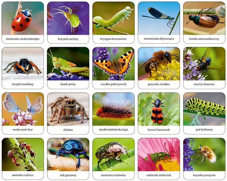 OWADY I PAJĄKI POLSKI - adamigo memoryBiedronka, ważka, żuk czy mucha – to tylko kilka z owadów występujących w Polsce. Czy znasz ich więcej i wiesz jak wyglądają małe, niepozorne stworzenia żyjące blisko nas? Poznaj niesamowity i różnorodny świat owadów i pająków zawiera:40 sztuk tafelków (20 par) o wymiarach 54 x 54 mminstrukcję