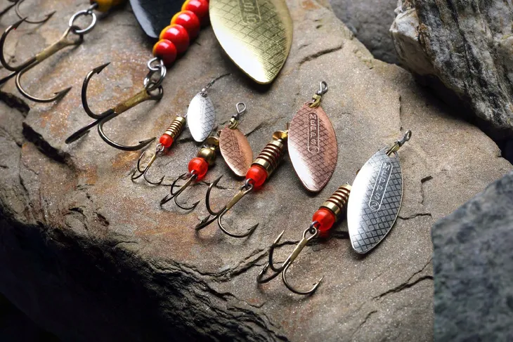 Another classic in the Mepps range - spinners with a narrow pallet shaped like a willow leaf. They do not jump out of the water when led against the current of extremely swift rivers. Excellent for fishing upstream on underwater obstacles in lowland rivers. Smaller models (up to No. 2) are readily attacked by chub, ide and barbel. In slower sections also by perch, zander and asp, which strike at black and silver spinners of virtually any size. On a double zero - no. 00 - you can expect bites of practically every fish, including carp surprises, such as rudd, dace, bream and crucian bream. On lakes and dammed reservoirs it is worth trying to catch pike and perch at greater depths (the spinner does not tend to rise to the surface as it does with Aglia and Comet). Larger models are also suitable for slow trolling. "Five" is a real Giant Killer for big sinker pike, catfish and really magnificent zander. Longs are also excellent spinners for trout and grayling waters. Both trout and grayling go for the "00″ and can be caught regularly with this lure. Trout, however, are best tempted with sizes from 1+ to 3, "fours" are the domain of sea trout and salmon, while the mighty "fives" must be in the boxes of every spinning angler targeting huchen. Black longs in sizes 1+ to 3 are real barbel killers, both in lowland and foothill rivers.