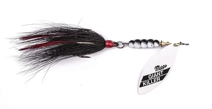Kolejna błystka wykoncypowana na szczupaki ? potężna paletka Aglia Long nr 5 i kotwica z wielką muchą z sierści wzbogaconą o pióra szyjne koguta, które nadają dodatkowy ruch wabiący. Wabik na wody stojące, głównie na jeziora sielawowe, na skraj głębokich uskoków dna oraz do polowania na szczupaki w toni. Raczej do standardowego spinningu, jeśli trolling, to niezbyt szybki i z downriggerem utrzymującym błystkę na zaplanowanej głębokości.