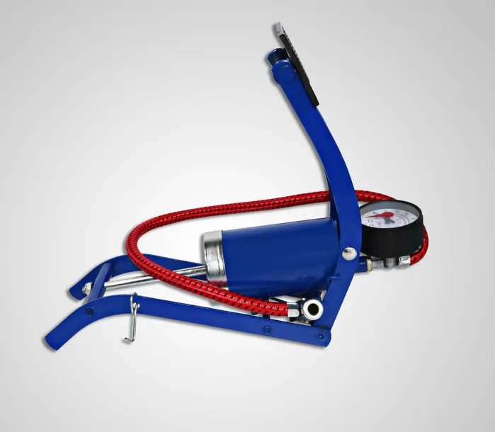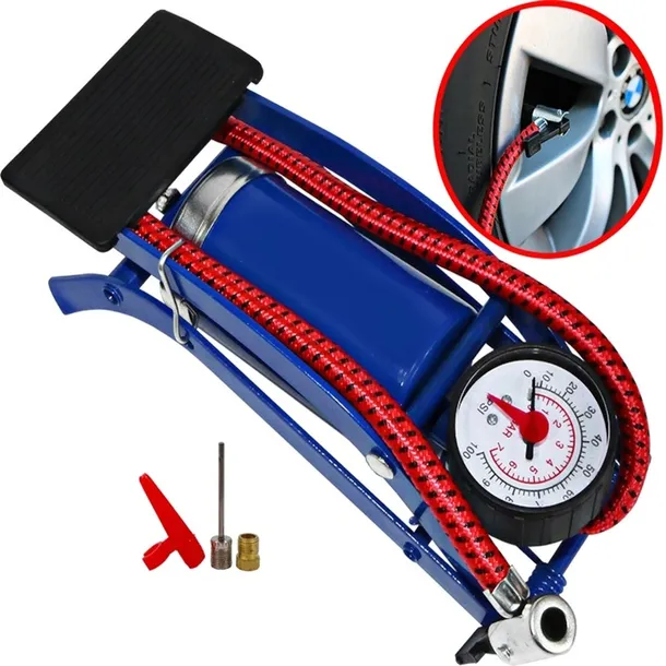 POMPKA NOŻNA SAMOCHODOWA/ROWEROWA JEDNOCYLINDROWA Z MANOMETREM + KOŃCÓWKI