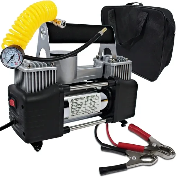 METALOWY KOMPRESOR SAMOCHODOWY 12V DWUTŁOKOWY