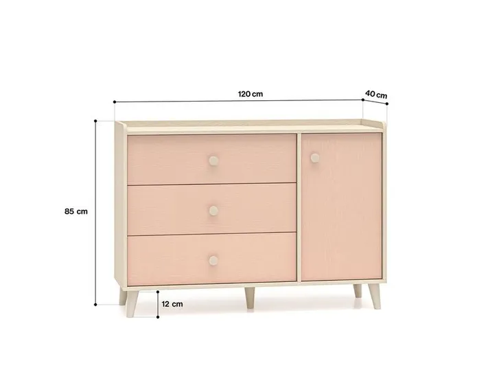 - Korpus:Odcień Piasek pustyni – jasny, neutralny kolor, który rozjaśni wnętrze i doskonale wpasuje się w różne aranżacje.Fronty (do wyboru):Szary Pallad: Uniwersalny, elegancki kolor dla fanów stonowanego i nowoczesnego designu.Millenial Pink: Subtelny róż, który wprowadza odrobinę ciepła i delikatności do Twojej przestrzeni.Uchwyty:Małe, okrągłe gałki w kolorze beżu piaskowego, zapewniające wygodne użytkowanie.Nóżki:Wysokość: 12 cm, kolor beż piaskowy – stabilne i stylowe nóżki nadają meblowi lekkości i pozwalają łatwo utrzymać czystość pod szafą