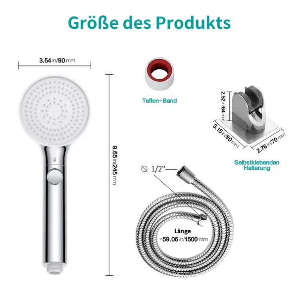 - [Łatwy w instalacji]: Standardowe złącza G1/2'' prysznica z wężem są odpowiednie dla większości gospodarstw domowych. Połączenie beznarzędziowe zajmuje kilka minut. Ten prysznic jest dostarczany z 150 cm wężem ze stali nierdzewnej, taśmą klejącą i instrukcją instalacji. Po prostu postępuj zgodnie z instrukcjami, aby zainstalować zestaw prysznicowy.