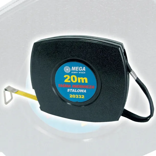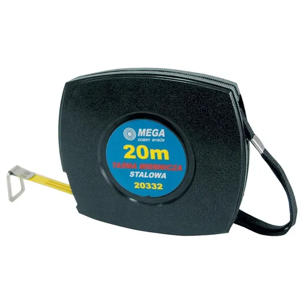 Taśma miernicza stalowa TMEGA o długości 20 m. Taśma wykonana z wysokiej jakości stali. Ergonomiczna obudowa z mocnego tworzywa sztucznego umożliwia pewny chwyt. Zaczep końcowy pozwala na zamocowanie końca taśmy, co ułatwia dokonanie pomiaru.