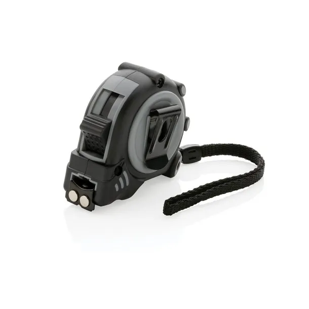 Miara 3 m, taśma o szerokości 16 mm z haczykiem i magnesami, przycisk blokady, wykonana z ABS pochodzącego z recyklingu z certyfikatem RCS (Recycled Claim Standard) który gwarantuje, że wykorzystane materiały pochodzą z recyklingu, całkowita zawartość materiału z recyklingu obliczona w oparciu o wagę całkowitą przedmiotu: 15%, uchwyt z TPR, w pudełku z papieru kraftowego z certyfikatem FSC® mix (Forest Stewardship Council)