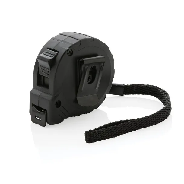 Miara 3 m, taśma o szerokości 16 mm z haczykiem, przycisk blokady, wykonana z ABS pochodzącego z recyklingu z certyfikatem RCS (Recycled Claim Standard) który gwarantuje, że wykorzystane materiały pochodzą z recyklingu, całkowita zawartość materiału z recyklingu obliczona w oparciu o wagę całkowitą przedmiotu: 17%, uchwyt z TPR, w pudełku z papieru kraftowego z certyfikatem FSC® mix (Forest Stewardship Council)
