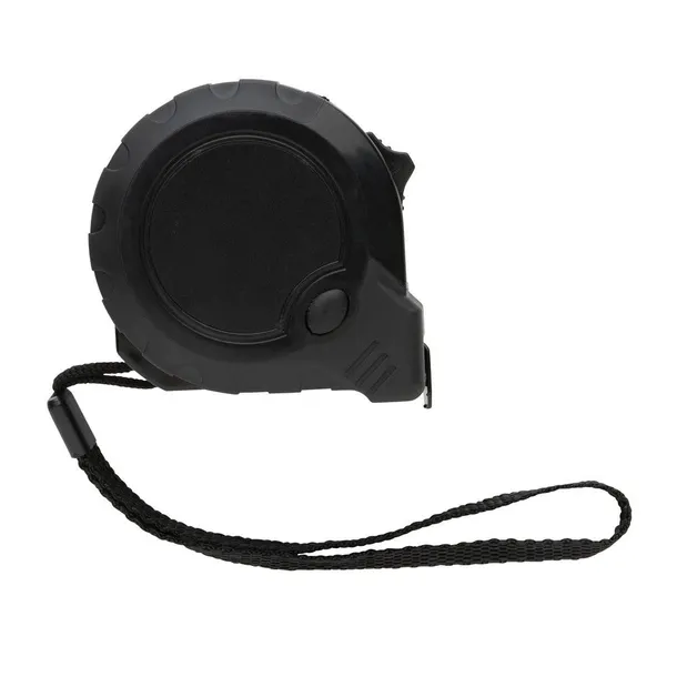 Miara 5 m, taśma o szerokości 19 mm z haczykiem, przycisk blokady, wykonana z ABS pochodzącego z recyklingu z certyfikatem RCS (Recycled Claim Standard) który gwarantuje, że wykorzystane materiały pochodzą z recyklingu, całkowita zawartość materiału z recyklingu obliczona w oparciu o wagę całkowitą przedmiotu: 15%, uchwyt z TPR, w pudełku z papieru kraftowego z certyfikatem FSC® mix (Forest Stewardship Council)