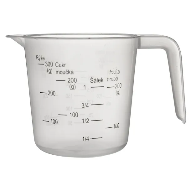 Miarka kuchenna w formie wygodnego kubka z uchwytem i wylewką. Miarka jest przydatna w każdej kuchni do odmierzania odpowiedniej ilości składników. Miarka jest poręczna i niedużych rozmiarów, dzięki czemu używanie jej i przechowywanie będzie bardzo wygodne. Miarka kuchenna jest przydatna przy przygotowywaniu potraw, ponieważ pozwala na precyzyjne odmierzanie ilości składników, co jest kluczowe dla uzyskania odpowiedniej konsystencji i smaku potraw. Sprawdzi się w także w trakcie przygotowywania wypieków. Wyprodukowano zgodnie z europejskimi standardami.