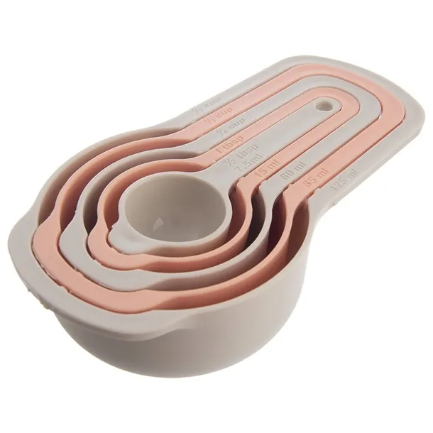 ✅ Pięć miarek kuchennych o różnych pojemnościach - Zestaw pięciu praktycznych miarek kuchennych. Przydatne do odmierzenia różnych ilości składników. W zestawie znajdują się miarki przeznaczone do odmierzenia łyżek oraz szklanek. W skład zestawu wchodzą miarki o pojemnościach: 125 ml (1/2 szklanki), 85 ml (1/3 szklanki), 60 ml (1/4 szklanki), 15 ml (1 łyżka), 7,5 ml (1/2 łyżki).