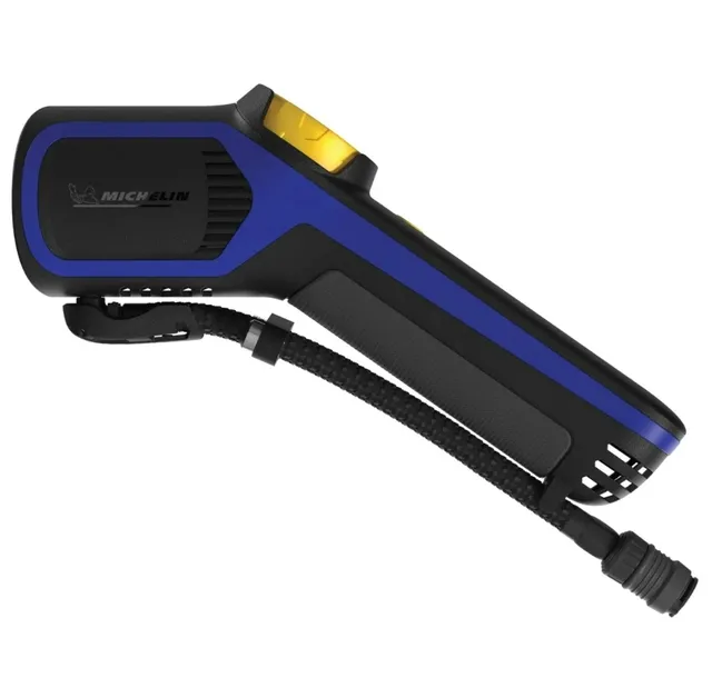 Bezprzewodowa pompka akumulatorowa MICHELIN Top-Up to idealne narzędzie do codziennych zadań i awaryjnych sytuacji związanych z pompowaniem. Dzięki niewielkim rozmiarom i lekkości, możesz zabrać go wszędzie, co sprawia, że doskonale sprawdza się zarówno w domu, jak i na wyjazdach. Wyposażony w cztery programowalne ustawienia ciśnienia, świetnie nadaje się do pompowania opon rowerowych, motocyklowych, samochodowych oraz piłek sportowych.