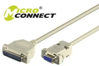 - Opis: MicroConnect Serial Cable DB9-DB25 3M F/M Serial printer connection Pinning : 1-4, 2-2, 3-3, 4-5, 4-6, 5-7, 6-20, 8-20. Shielded type. Mounted.