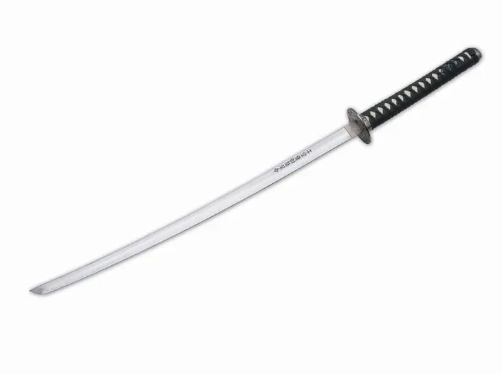 Magnum Black Samurai to niezwykły i bogato zdobiony miecz kolekcjonerski, który może stać się atrakcją całej Twojej kolekcji. Nawet w drewnianej, pomalowanej na czarno pochwie Czarny samuraj wygląda imponująco. Pochwa przedstawia ręcznie wyrzeźbione znaki kanji (znaki) „Hojność, Współczucie i Szczerość”. Wyciągając miecz z ozdobną krawędzią tnącą i rękojeścią ze stali węglowej, możesz odkryć kolejne kanji, które są głęboko wytłoczone w ostrzu. Znaki te oznaczają: „Od czasów starożytnych Bóg jest z tymi, którzy służą z honorem i godnością”. Tsuba w kolorze antracytowym i tradycyjnie owinięty uchwyt dopełniają dostojnego całości. Zawiera drewniany stojak na miecz.