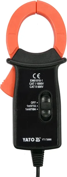 wyposażony w cęgi pomiarowe pozwalające mierzyć natężenie prądu przemiennego w pojedynczym przewodzie metodą indukcyjną. Dzięki temu umożliwia pomiar znacznie wyższego natężenia prądu niż w przypadku konwencjonalnych mierników elektrycznych. Miernik jest akcesorium uzupełniającym do miernika uniwersalnego YT-73085, a także każdego miernika uniwersalnego, który mierzy w zakresie miliwoltów.
