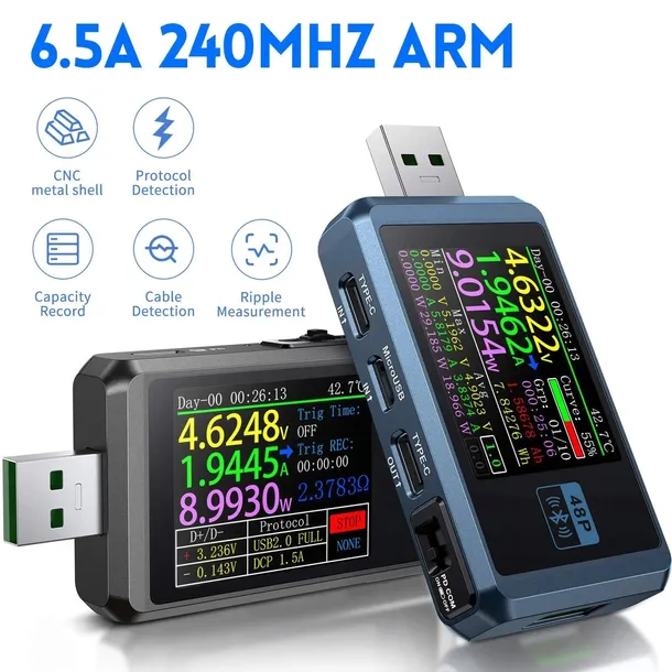 - Wysoka precyzja 6-cyfrowego wyświetlacza, obsługa wielu protokołów szybkiego ładowania.