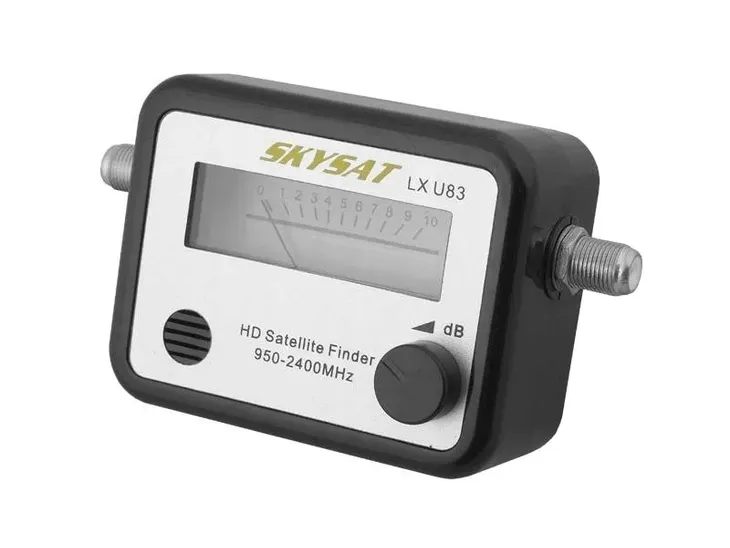 Bardzo prosty i wygodny w obsłudze miernik do ustawiania optymalnego poziomu sygnału odbieranego przez antenę satelitarną marki Skysat. To niewielkie urządzenie pozwala nam na odnalezienie najlepszego sygnału dla naszego odbiornika telewizyjnego. Posiada wychyłowy wskaźnik, ukazujący aktualny poziom sygnału, wbudowaną regulację czułości oraz głośnik, który wydaje dźwięk, gdy miernik wykryje sygnał. Urządzenie nie wymaga baterii, zasilane jest z odbiornika satelitranego, dzięki czemu jest zawsze gotowe do użycia. Dzięki niemu w łatwy i szybki sposób możemy ustawić antenę.