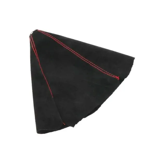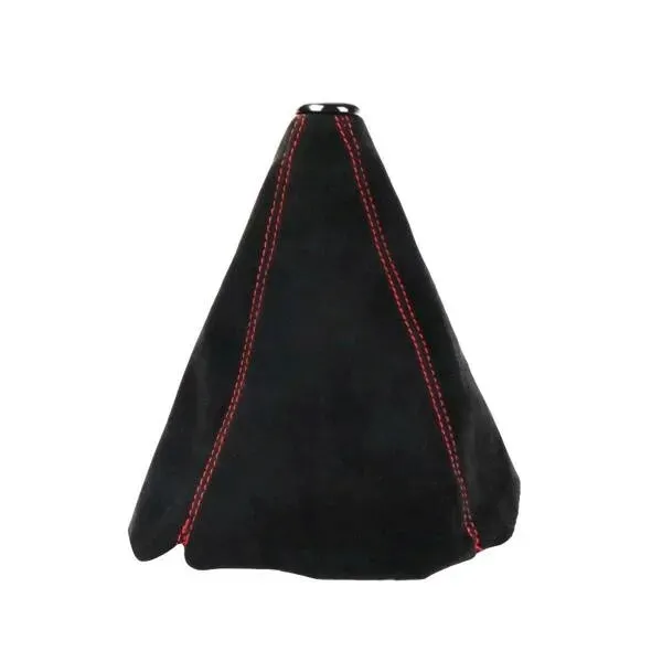 Uniwersalny mieszek zmiany biegów wykonany z alkantary z czerwonymi przeszyciami.
