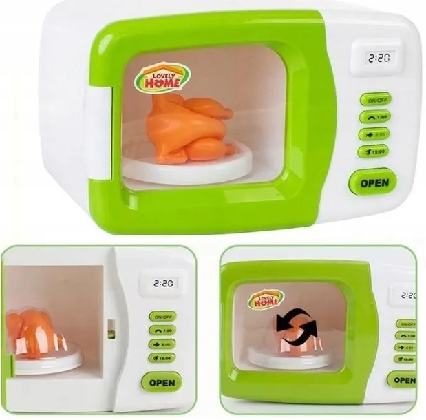 Przedstawiamy Państwu fantastycznie odwzorowaną biało-zieloną mikrofalówkę z serii "Lovely home - life experience". Dbałość wykonania oraz realistyczny wygląd gwarantuje pełną satysfakcje i super zabawę! Zabawka została wykonana z wysokiej jakości bezpiecznych materiałów. Sprzęt jest lekki i niewielkich rozmiarów - idealny do zabawy dla małych rączek.
