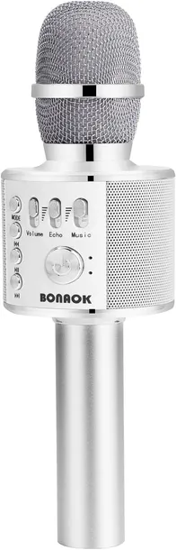Bonaok mikrofon dziecięcy do karaoke, przenośny mikrofon 3 w 1, ręczny mikrofon do karaoke, prezent urodzinowy, do domu, na imprezę, mikrofon do iPhone'a/Androida/iPada/PC/smartfona srebro