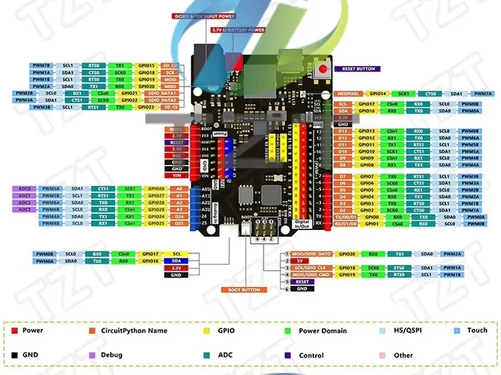 - Zasilanie: USB-C lub poprzez piny VIN/5V