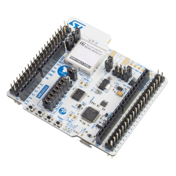 Zestaw składa się z płytki rozwojowej Nucleo-64 z mikrokontrolererm STM32WB15CCU6U.