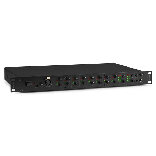 Dużą zaletą tego studyjnego miksera instalacyjnego jest jego rozbudowane wejścia stereo. Nie mniej niż 8 sztuk. Można więc podłączyć szeroką gamę sprzętu. Każdy kanał posiada diody LED wskazujące, czy sygnał jest przesterowany, czy przeciążony. Poziom wejściowy można łatwo regulować w zakresie +4 dBu i -10 dBV na kanał wejściowy. Ponadto ten studyjny mikser instalacyjny jest wyposażony w 2 wyjścia stereo, z których oba można przełączyć na mono. Możliwe jest również zbudowanie PDSM100 w 19-calowym stojaku lub szafie krosowniczej. W ten sposób możesz obsługiwać ten mikser do instalacji studyjnej (i kilka urządzeń 19-calowych) z jednego centralnego punktu.