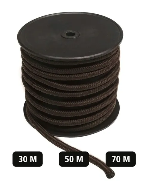 Ten opis został przetłumaczony maszynowo z oryginalnego tekstu.100% Nylon Dostępny w następujących grubościach: Szerokość: 5 mm Długość: 70 m Nośność: 100 kg Szerokość: 7 mm Długość: 50 m Nośność: 300 kg Szerokość: 9 mm Długość: 30 m Nośność: 380 kg Uwaga: brak liny wspinaczkowej!