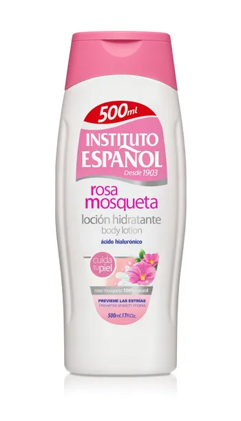Instituto Español moisturizing lotion is enriched with rosehip and hyaluronic acid, which stimulate the skin's hydration and natural elasticity, and help to eliminate scars and stretch marks. Rosehip strengthens the cells that produce collagen, elastin and hyaluronic acid, responsible for skin firmness and elasticity. Hyaluronic acid, which has strong water-attracting properties, is used as a skin moisturizer. Provides lubrication of collagen fibers, making the skin firmer. A strong combination of rosehip and hyaluronic acid delays skin aging.