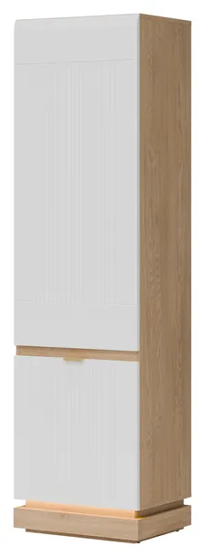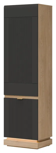 Szafka MILTON ML07 to elegancka i funkcjonalna propozycja z kolekcji MILTON, idealna do nowoczesnych wnętrz, gdzie przestrzeń i estetyka tworzą spójną całość. Wysoka, zamykana konstrukcja została zaprojektowana z myślą o maksymalnej pojemności – wewnętrzne półki doskonale sprawdzą się do przechowywania książek, dokumentów czy codziennych akcesoriów, zapewniając porządek i łatwy dostęp do zawartości. Fronty wykonane z matowego MDF, dostępne w kilku stonowanych wariantach kolorystycznych, zdobi subtelne frezowanie, które podkreśla nowoczesny, ale i ponadczasowy charakter mebla. Stylowe uchwyty w kolorze złotym dodają całości eleganckiego wykończenia. Korpus w dekorze dąb cremona torro wprowadza naturalne ciepło do aranżacji i harmonijnie współgra z kolorystyką frontów, tworząc nowoczesną, a zarazem przytulną kompozycję. Szafka została wyposażona w system cichego domyku, co zapewnia wyjątkowy komfort użytkowania. To idealny wybór do salonu, gabinetu czy przedpokoju – wszędzie tam, gdzie liczy się styl, funkcjonalność i wysoka jakość wykonania.