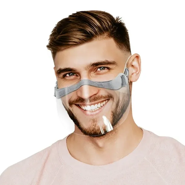 Przezroczysta maska na usta i nos. Chroni przed działaniem mało szkodliwych czynników mechanicznych. Środek ochrony indywidualnej.