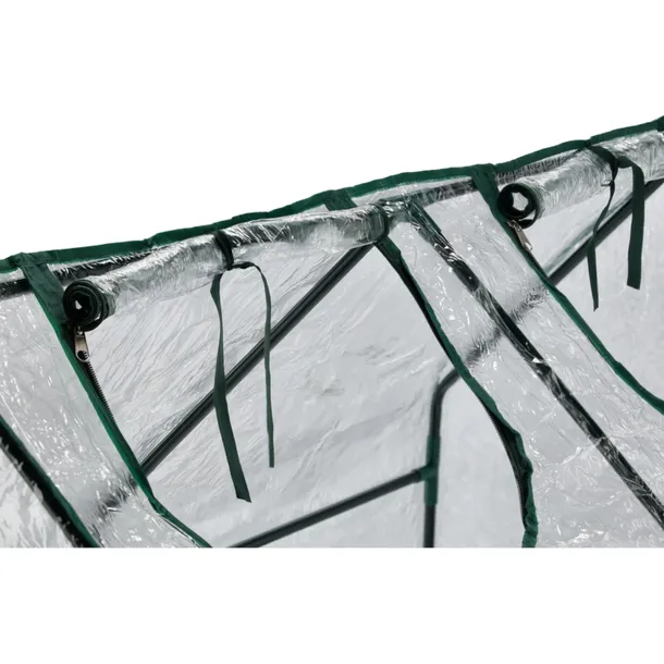 Stelaż wykonany ze stalowych rurek zapewnia stabilność konstrukcji, a pokrycie z materiału PVC tworzy osłonę dla roślin. Dzięki kompaktowym wymiarom mini-szklarnia sprawdza się w przydomowych ogrodach, na działkach lub w innych miejscach przeznaczonych do uprawy roślin.