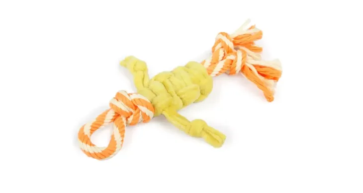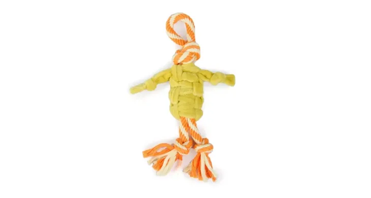 Zabawka w postaci liny wykonana z kolorowego dżerseju i miękkiego pluszu to idealny nowy towarzysz zabaw dla Twojego szczeniaka.