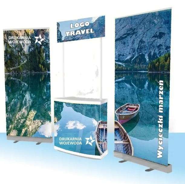 Zestaw targowy stoisko promocyjne i 2 rollupy.