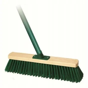 Miotła wykonana z drewna bukowego.Włosie pet.Trzonek wzmocniony stalowy ,zielony w ot-inie pp.