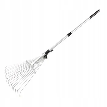 Miotło-grabie -eskopowe . Trzonek wykonany z aluminium. Suwak umożliwiający reg-ację rozstawu zębów.