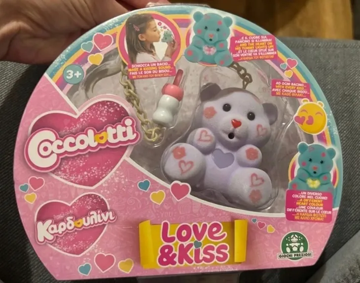 Uwaga ‼️ zabawka kompletna Opakowanie otwarte mis nie wyjmowany z opakowania Mis Coccolitti – Love & Kiss to urocza, interaktywna zabawka stworzona z myślą o dzieciach powyżej 3. roku życia. 🧸 Opis produktu: Słodki, fioletowy miś ozdobiony różowymi serduszkami zachwyca swoim urokiem i delikatnym wykończeniem. Posiada czarne oczka, czerwony nosek w kształcie serca oraz dołączoną szminkę, którą można malować buzię misia. Po „pocałunku” policzki i serduszka zmieniają kolor pod wpływem temperatury, co daje wyjątkowy efekt zabawy. ✨ Cechy produktu: • efekt zmiany koloru pod wpływem ciepła • dołączona szminka do zabawy • łańcuszek umożliwiający przypięcie do plecaka lub torebki • estetyczne, kolorowe opakowanie idealne na prezent • przeznaczony dla dzieci 3+ To idealny pomysł na prezent dla dziecka, które lubi kreatywną i uroczą zabawę pełną serduszek i kolorów 💖