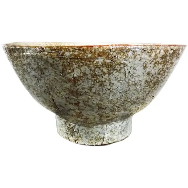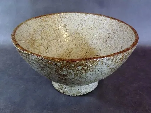 Duża,kamienna,ciężka misa w kolorze kremowym w prążki.