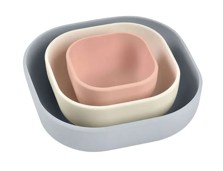 Beaba Zestaw 3 miseczek z silikonu Velvet grey/Cotton/Dusty rose