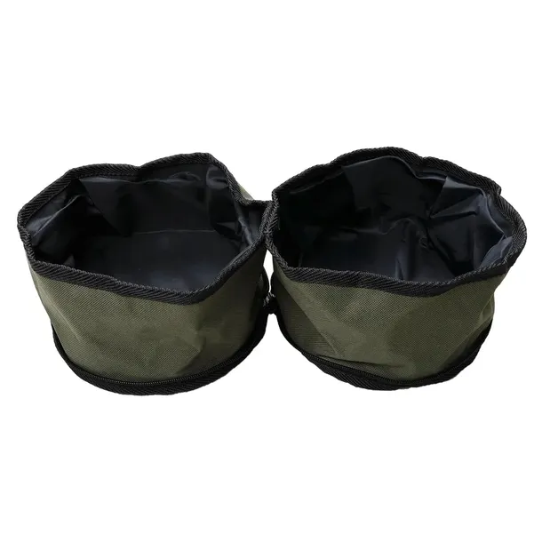 Podwójna miska jest łatwa w transporcie i wykonana w pełni wykonana z tworzywa sztucznego. Miska jest składana i zapinana na suwak. Dzięki wykorzystaniu najlepszej jakości materiałów miska jest wytrzymała i łatwa w czyszczeniu. Idealna na dalsze wypady z naszym kompanem, aby go nakarmić lub napoić. Jej pojemność wynosi 2 x 2 litry.