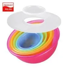 Komplet Weekend 8 - mix kolorów Wysokiej jakości tworzywo sztuczne W zestawie: miseczki o pojemności 0.5l/0.75l/1.6l/3.6l miska 6l z podziałką durszlak przykrywka do miksowania z wieczkiem