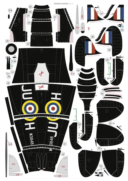 Model przedstawia 2 wersje (rekonstrukcje) malowania samolotu Spitfire Vb JU-H (W3848) z 111 Dywizjonu Myśliwskiego RAF, lotnisko Deben, grudzień 1941r. Starsza rekonstrukcja (z połowy lat 80-tych) i nowa opracowana na podstawie dostępnych zdjęć samolotu.