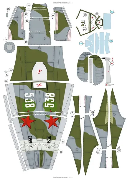 • 5 kartek z nadrukowanymi częściami - druk offsetowy.• 1 arkusz folia z nadrukowanymi elementami oszklenia i tablicy przyrządów pokładowych.