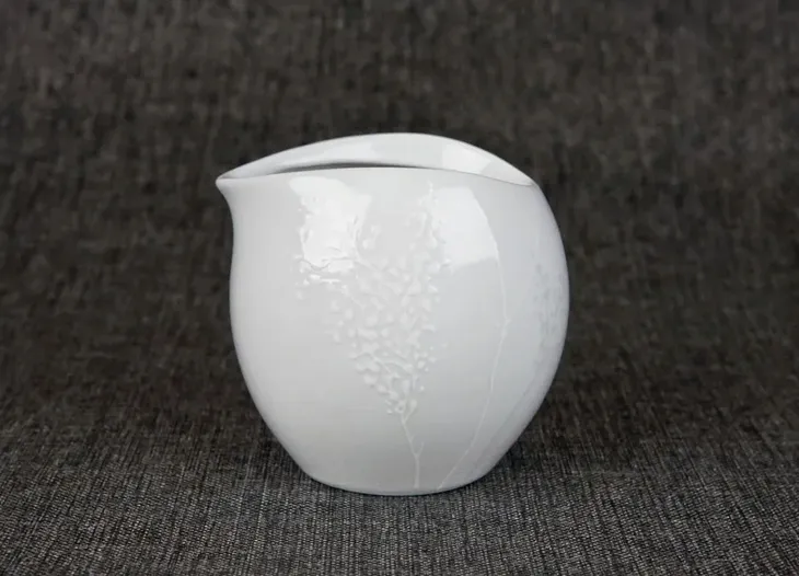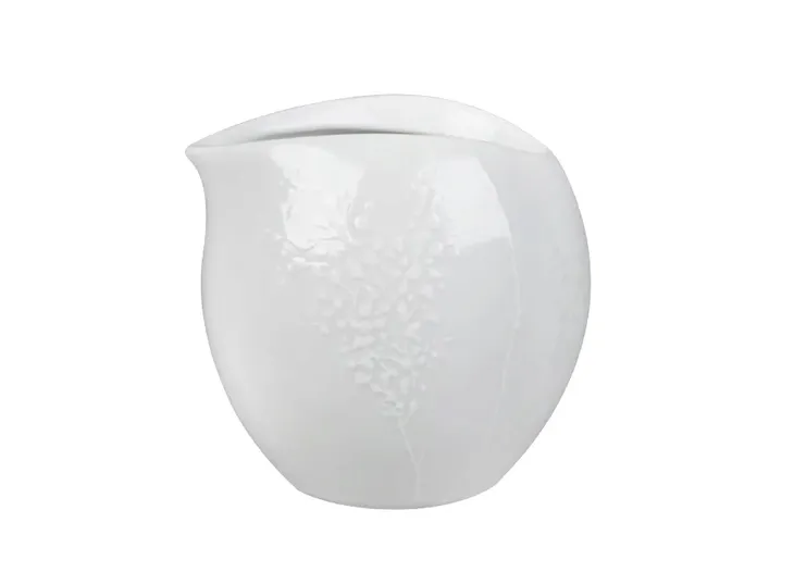 Uroczy mlecznik Magic Tree z subtelnym zdobieniem w postaci nakrapianych drzewek. Aplikacja jest w kolorze szarości i bieli o ton jaśniejszej od samej porcelany, a drzewka wyczuwalne są w dotyku pod palcem.