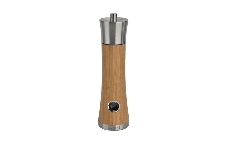Młynek do soli lub pieprzu. Posiada ceramicznym mechanizmem służący do mielenia. Wykonany jest z trwałego drewna bambusowego. Okrągłe okienko w obudowie pozwala zobaczyć co jest w środku. Doskonale odnajdzie się w nowoczesnej kuchni. Połączenie elementów chromowych z elementami drewna z bambusa daje piękne połączenie, które wpasuje się w każde wnętrze.