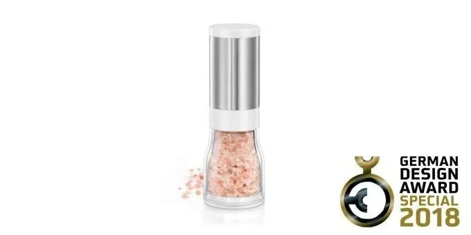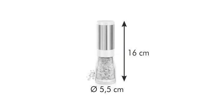 Doskonały do przyprawiania potraw świeżo mieloną solą. Z wysokiej jakości ceramicznym mechanizmem mielącym, regulatorem grubości mielenia i wieczkiem do zbierania resztek przyprawy. Młynek został wykonany z wysokiej jakości stali nierdzewnej i z wytrzymałego plastiku. W razie potrzeby młynek należy przetrzeć wilgotną ścierką i osuszyć. Nie należy myć w zmywarce. Gwarancja 3- letnia.