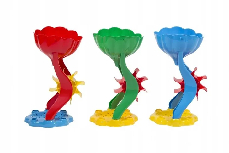 Z pomocą tego młynka dziecko może przesypywać piasek lub wodę i obserwować poruszające się narzędzie. To dla malucha niezwykle ciekawe, a przy okazji pouczające doświadczenie! Duży młynek zachwyca bogactwem nasyconych kolorów, które dodatkowo zwiększają jego atrakcyjność. Kolejną zaletą oferowanego produktu jest trwały, odporny na czynniki zewnętrzne materiał. Młynek doskonale nadaje się do zabawy w ogrodzie lub na placu zabaw, z powodzeniem można zabierać go również na każdy wakacyjny wyjazd.